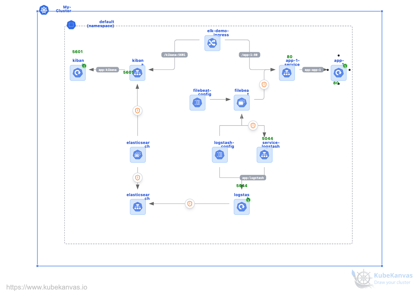 * **Ingress:** Access Nginx at `http://elk.local/app-1` and Kibana at `http://elk.local/kibana`.